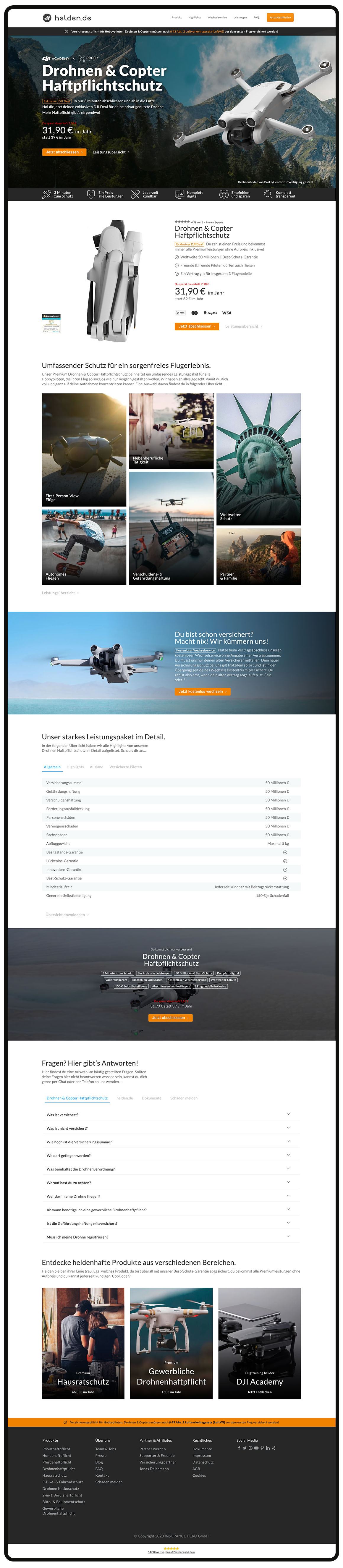 Während unserer Zusammenarbeit mit DJI lag mein Fokus auf dem Branding von helden.de. Meine Aufgabe bestand darin, sicherzustellen, dass die Branding-Richtlinien für die Partner-Landingpage, Werbematerialien und Videos eingehalten wurden. In enger Zusammenarbeit mit meinem Team entwickelten wir eine passende Partner-Corporate Identity, die sowohl zu DJI als auch zu helden.de passte. Darüber hinaus spielte ich eine entscheidende Rolle bei der Konzeption von Inhalten, Kampagnenthemen und überwachte erfolgreich die Umsetzung des Projekts.