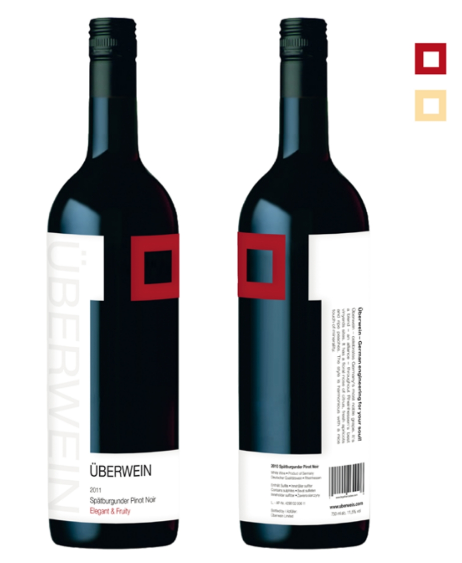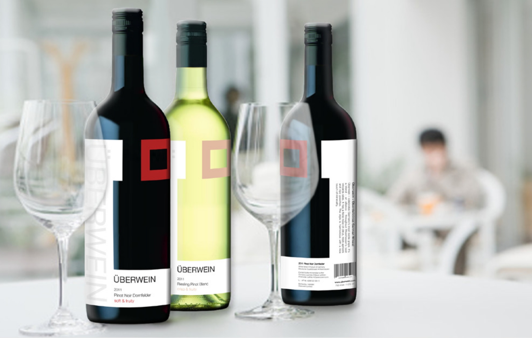Das deutsche Wort „Über“ findet auch im Englischen Verwendung und steht dort in der Regel für Begriffe wie „super“ oder „etwas außergewöhnlich Hochwertiges“. Bei der Einführung der neuen deutschen Weinmarke auf dem englischen Markt war es unser Ziel, genau diesen Charakter zu vermitteln und eine Brücke zwischen beiden Kulturen zu schlagen. Wir haben das „Ü“ als herausragendes Gestaltungselement in das Weinflaschen-Design integriert, sodass es um den gesamten Flaschenumfang verläuft. Dies schafft eine positive Assoziation und verleiht dem Produkt eine besondere Note.